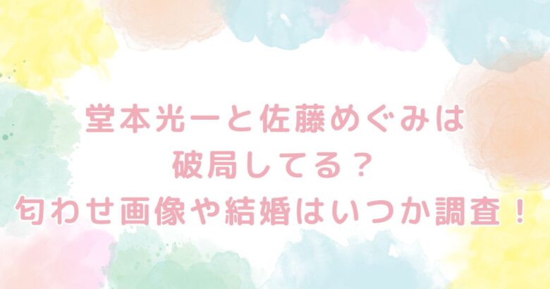 といった、堂本光一さんと佐藤めぐみさんの破局の真相や匂わせ画像、結婚はいつなのかなどの情報ですよね。