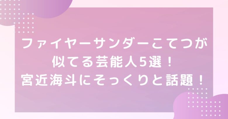 この記事では「ファイヤーサンダーこてつが似てる芸能人5選!宮近海斗にそっくりと話題!」と題し、ファイヤーサンダーのこてつさんと似てる芸能人について紹介しました。