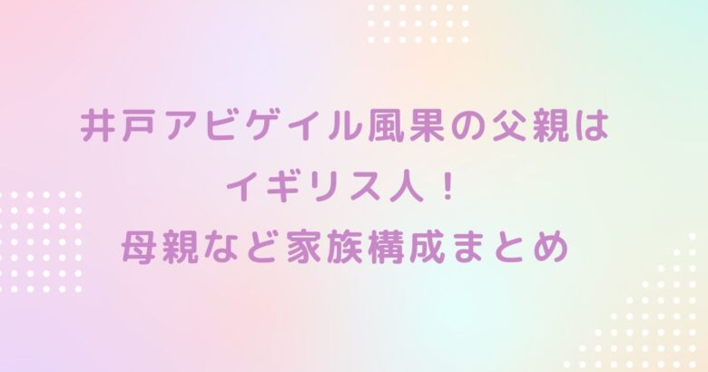 そこでこの記事では、「井戸アビゲイル風果の父親はイギリス人!母親など家族構成まとめ」と題し、父親や母親、兄弟について紹介します。