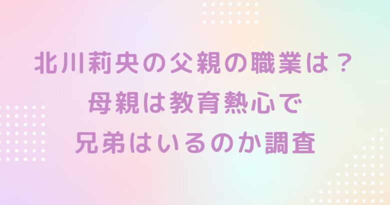 この記事では「北川莉央の父親の職業は?母親は教育熱心で兄弟はいるのか調査」と題し、北川莉央さんの父親や母親、兄弟、家族構成について紹介しました。