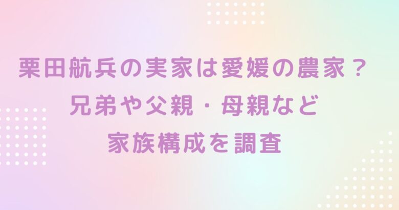 この記事では「栗田航兵の実家は愛媛の農家?兄弟や父親・母親など家族構成を調査」と題し、栗田航兵さんの実家や兄弟、父親、母親、家族構成について紹介しました。
