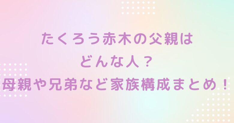 といった、たくろうの赤木裕さんの父親や母親、兄弟、家族構成についての情報ですよね。