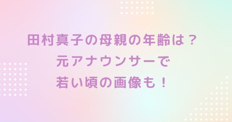 この記事では「田村真子の母親の年齢は?元アナウンサーで若い頃の画像も!」と題し、田村真子さんの母親について紹介しました。